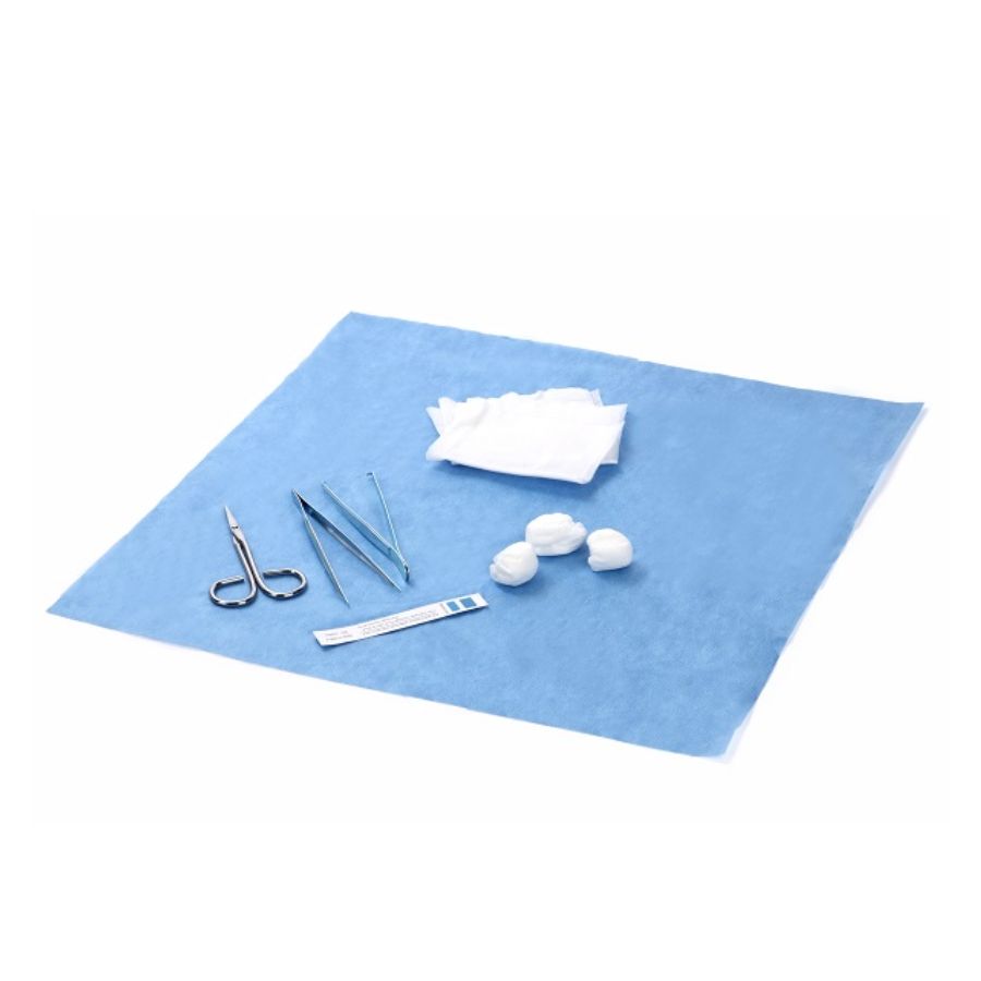 Bolas de spunlace, 35 g/m² spunlace, 3 piezas Pinza para vendajes desechable, metal, punta puntiaguda, 12 cm, 1 ud Pinza para tejidos, metal, 12 cm, 1 ud. Almohadillas Spunlace, 14,5 x 19,35 cm, tamaño plegado 7,25 x 9,75 cm, 4 capas, 3 piezas Tijeras para quitar puntos, metal, 14 cm, 1 ud Bandeja, 17 x 11 cm, 1 ud Envoltura, 40 x 40 cm, tejido no tejido SMS de 35 g/m², 1 ud Tarjeta indicadora de esterilización, 1 ud. |